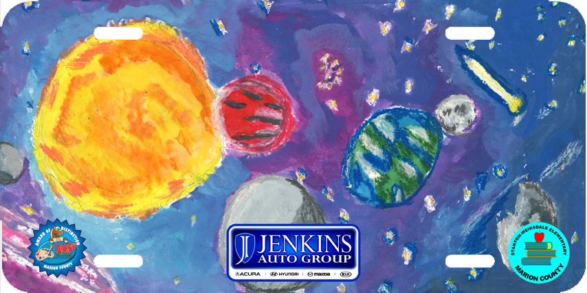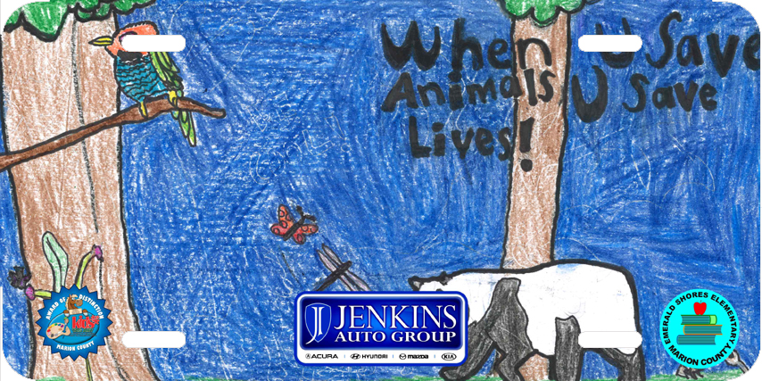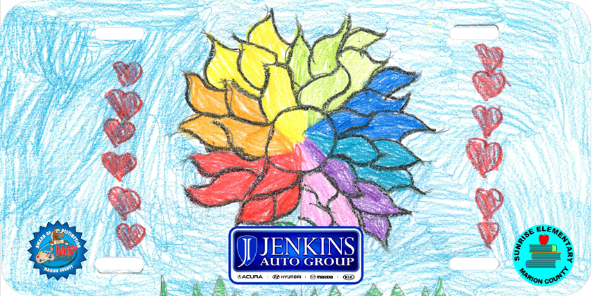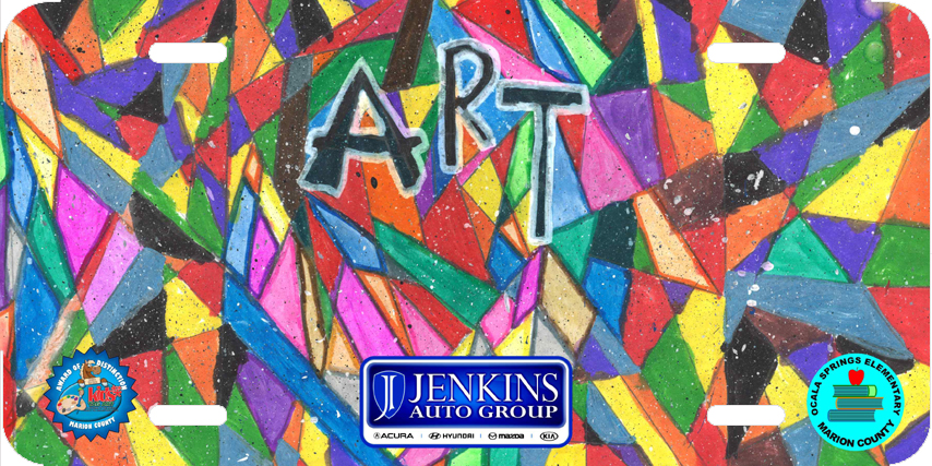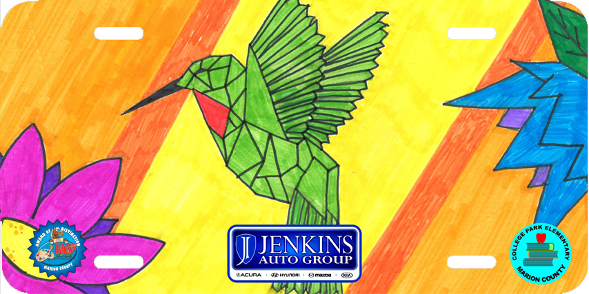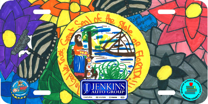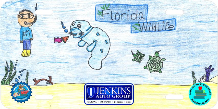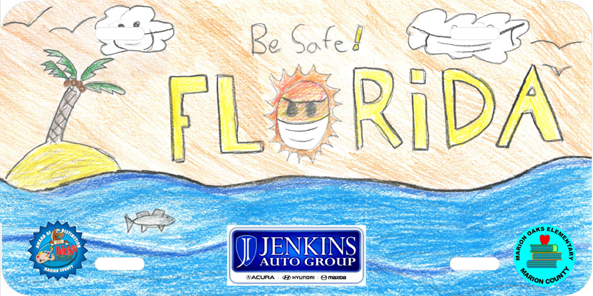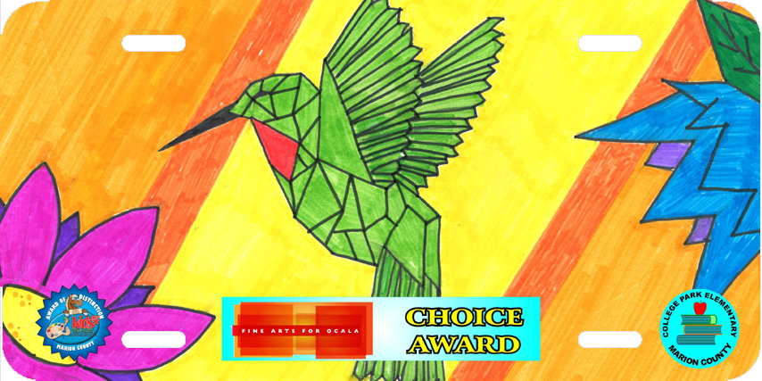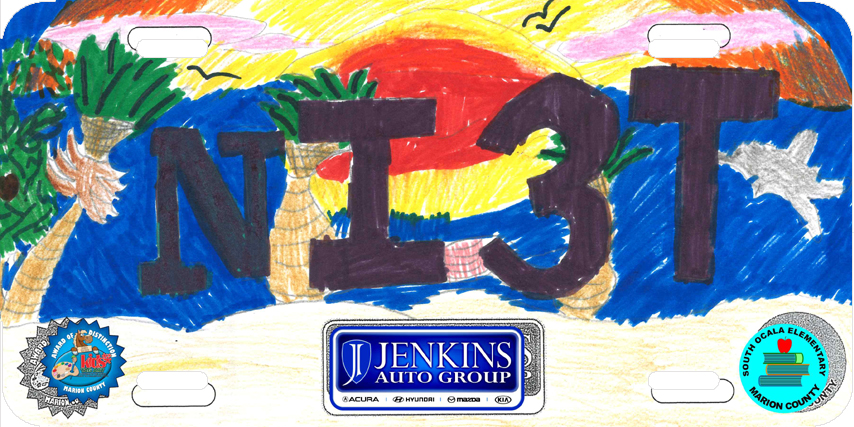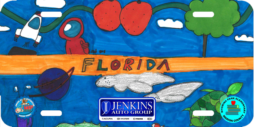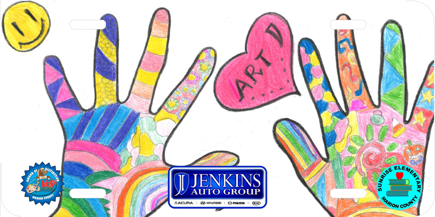 Meet "Marion the Mare", our official mascot for the Marion County Tax Collector Kids Tag Art program. This program inspires fifth grade art students to design their own specialty plate while at the same time learning about the practical application of license plate art and how Florida's 100 specialty license plates support worthy causes. Each participating school earns 100% of the proceeds and a share of over $14,000 of sponsorship money. Our major sponsor this year again was Jenkins Auto, donating $10,000. Fine Arts for Ocala, Inc. donated $1,000, Florida Heart Research Institute donated $2500. Other sponsorship donations were $500 from Ciraco Electric. We received in kind sponsorship from Appleton Museum of Art College of Central Florida and Woods Printing.